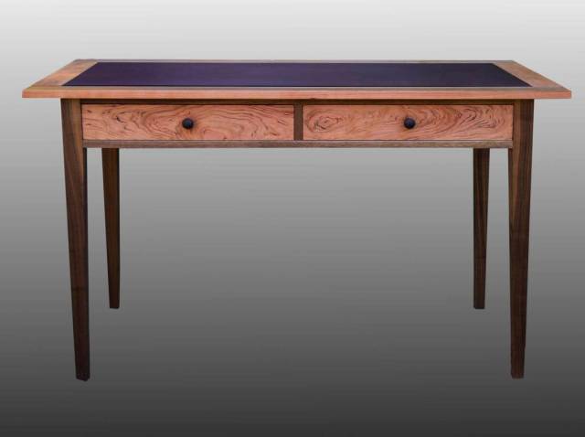 Walnut and Cherry Writing Desk with Leather Inlay Top