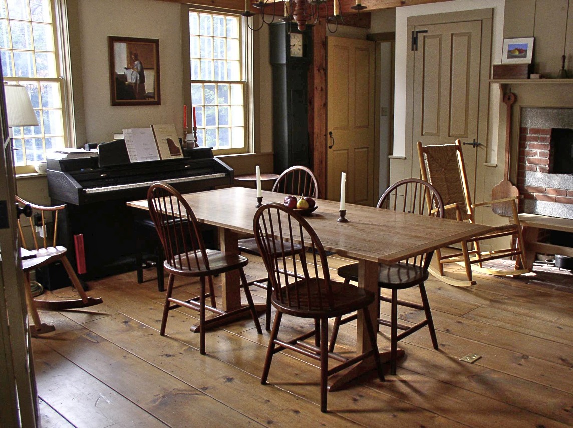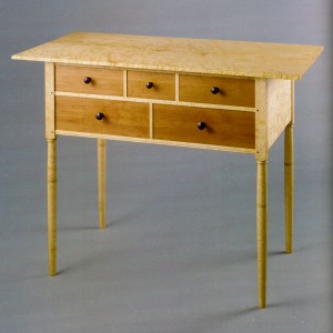 The Fifteen Properties are best understood in the context of actual examples of which there are many in both good traditional and contemporary work. Unless otherwise noted, the examples are from my own (mostly) Shaker-inspired work. The two exceptions are the Shaker sewing desk which is somewhat “generic” and for which I have no reference on the source of the photo, and the photo of the sideboard by Garrett Hack, for which permission was granted. While good Shaker-style pieces exhibit the Fifteen Properties, they are usually understated and therefore less useful as initial examples. Other examples are supplied by links to other sites since in many cases it is not clear who may hold copyrights, if any.